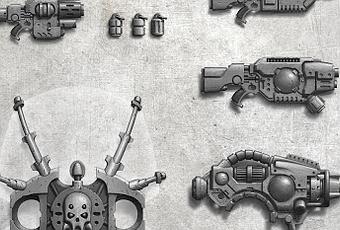 Imagen de abajo (Izq a dcha en horizontal y de arriba a abajo): Pistola lanzallamas, Combi láser + plasma, servo-garra. Rifle Rad, Cañón de plasma. Rifle de fusión. Cañón de Fusión. Lanzallamas. Shock Baton. Rifle Grav. Cuchillo de Energía
