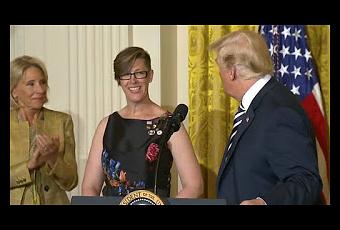 No es la Casa Blanca la que elige al Docente del año, sino el Consejo de Directivos de Escuelas Estatales, una organización sin fines de lucro y sin afiliación partidista. Manning expresó: “A lo largo del año próximo, quiero que todos mis estudiantes sepan que estoy aquí por los estudiantes refugiados, por los estudiantes inmigrantes, por los estudiantes de la alianza gay-hetero y por todas las niñas a las que he educado a lo largo de los años; para darles el mensaje de que son queridos, de que son amados, de que son personas plenas y que ellos importan”.
