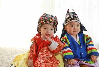 Bebés vestidos con ropa tradicional