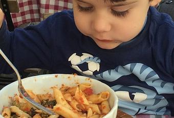 Estamos en Italia así que aquí la reina es la pasta, la preparan de mil formas y todas buenísimas. Así que no se me ocurre mejor destino si viajáis con niños.