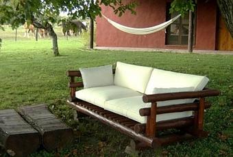 Para conseguir un acabado romántico nada mejor que barnizar tu caseta con un tono algo más oscuro que el natural. Las telas para los sillones pueden ser de flores en tonos malvas, rosas o anaranjados para que aporten alegría. Para iluminar, unas antorchas de exterior resultan ideales. Pueden completar el conjunto una pérgola, una hamaca y un centro de mesa con velas flotantes. No olvides colocar unas flores a tono con el estampado de los tejidos.