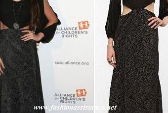 En esta ocasión la cantante y actriz estadounidense eligió un vestido largo cortado en la cintura, con las mangas abiertas y falda jaspeada, de estilo decididamente "Morticia", demasiado oscuro y poco favorecedor, eso si, "low-cost".