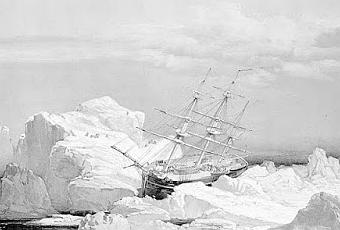 El navío HMS Investigator en una posición crítica durante su paso por la costa de la Isla Baring, en los Territorios del Noroeste, Canadá.