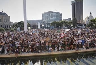“No hay miedo”, “Queremos ver el virus”, “Bote, bote, bote, aquí no hay rebrote”, “Falsos test, falsos positivos”, “La segunda ola es una trola”… Fueron algunos de los lemas coreados por centenares de manifestantes –más de 2.000 según algunos medios–, juntos y apretados, sin respetar las medidas de seguridad, que se dieron cita desde las seis de la tarde del pasado domingo en la plaza de Colón de Madrid. Los “conspiranoides” protestaron contra la obligatoriedad de llevar mascarilla y consideraron “ridícula” la medida. Algunos incluso calificaron la pandemia de “farsa” y de “mentira”. Respondían así a la convocatoria que se difundió por redes sociales y que contribuyó a publicitar el cantante Miguel Bosé, quien había dado a entender que asistiría a ella. Pese a que los convocantes habían pedido que se acudiera con mascarilla, muchos de los presentes no la utilizaron o la llevaban mal puesta. La manifestación indignó a los sanitarios y abochornó a España entera.