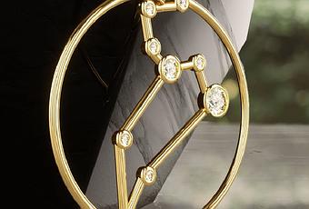 Constelación zodiacal de Leo en oro 18k con diamantes