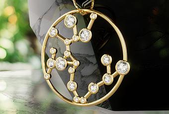 Constelación zodiacal de Sagitario en oro 18k con diamantes