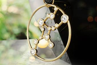 Constelación zodiacal de Virgo en oro 18k con diamantes