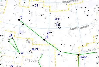 Con mucho, el objeto más famoso de la constelación es la Galaxia de Andrómeda (o M31), muy conocida entre los aficionados y profesionales. Como dato curioso hay que apuntar que es el objeto de cielo profundo más lejano que se puede ver a simple vista (está a 2'3 millones de años-luz de distancia de nosotros). Es una galaxia realmente grande, con aproximadamente un billón (sí, con B) de estrellas. Junto con la galaxia del Tríángulo, nuestra Vía Láctea y otras pequeñas galaxias, forma parte de lo que se denomina como grupo Local.