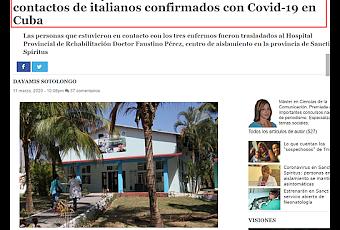 Quienes estuvieron en contacto con los tres turistas italianos que se hallaban en Trinidad y, que han sido confirmados como los primeros casos de Covid-19 en Cuba, se les realizan las acciones epidemiológicas correspondientes, informó la web Escambray.De acuerdo con el doctor Manuel Rivero Abella, director provincial de Salud en Sancti Spíritus, las personas que se relacionaron directamente con los extranjeros —entre las que se hallan el chofer del auto, la turoperadora y las personas del hostal trinitario donde se hospedaron— se encuentran asintomáticos en estos momentos; no obstante fueron trasladados al Hospital Provincial de Rehabilitación Doctor Faustino Pérez, centro designado en la provincia espirituana para el aislamiento de los casos sospechosos.