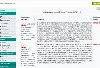 Para ubicar la información científica relacionada con COVID-19, es necesario ir a la sección de “Documentos de interés” en el menú de la Biblioteca y colocar en el buscador las palabras clave: COVID, COVID-19, SARS-CoV-2 más el tema de interés, como diagnóstico, epidemiología, coronavirus, vacuna.