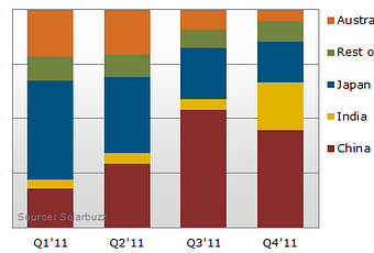 Algo similar está sucediendo en el mercado japonés, donde la energía solar tras Fukushima, goza de un mayor interés y las instalaciones se han incrementado de forma considerable durante los últimos meses del año. También en la India, la demanda está siendo impulsado por los programas nacionales de incentivo. Otros mercados emergentes en la región, como Taiwán, Corea del Sur, Tailandia y Malasia proyectan "alcanzar" los 700 MW de demanda adicional en el 2012.