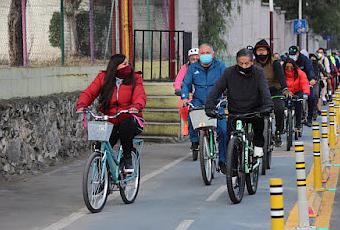 Las sudaderas y cubrebocas, fueron abrigadores para soportar el aire de la montaña, que en la subida parecía cortar la piel, pero el calor generado al pedalear en ladera, así como el compañerismo y calor humano los motivó para alcanzar la meta y a la vez recorrer y verificar las condiciones y operatividad de esta ciclovia, que en forma segura interconecta las comunidades de Texcoco.