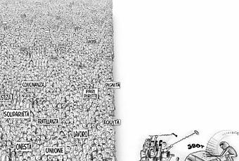 Es decir, más justificaciones para nuevas represiones contra los ecos de una imagen y de unas palabras, y todas ellas, a tenor de lo visto en la tele por el personal, serán “necesarias, profundas, amplias”… Esta imagen, publicada en la prensa italiana, ejemplifica el papel de algunos medios de comunicación aquí que, subliminal o burdamente, tergiversan día tras día en clave mariana la protesta social hasta convertirla en un intento de invasión de los bárbaros antisistema.