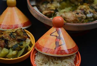 Hola a todos... Hoy os traigo una maravillosa receta de contramuslos de pollo aliñados con ras el hanout y cilantro, preparados en olla tajine, acompañados de calabacín, un plato lleno de aromas y sabores con el que estoy concursando en el reto de Nutrave y auspiciado por el chef Pepe Rodríguez.El ras el honut es un condimento muy utilizado en la comida árabe, y significa lo mejor de la casa, por lo que cada quién lo prepara a su gusto, lleva ingredientes básicos como el comino, canela, pimienta, cardamomo, pimentón, etc, y utilizado en la olla tajine es donde todos sus sabores y aromas salen al olfato y paladar, todo esto unido al sabor del cilantro, nos da un plato único, además lo he acompañado con un cous cous preparado con cebolla caramelizada, nuez moscada, comino y canela, simplemente exquisito!!
