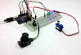 En este laboratorio realizaremos el control de un servomotor (SG90) con un joystick (KY-023). Durante el proceso de transmisión de ángulo se establecerán rangos de derecha (verde), neutro (azul) e izquierda (rojo) que se verán reflejados con los leds en el circuito.