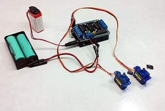 En el presente laboratorio aprenderemos a programar y conectar dos servomotores al módulo de control de motores L293D. El movimiento de los servoc es de 180 grados en ángulo ascendente y descendente.
