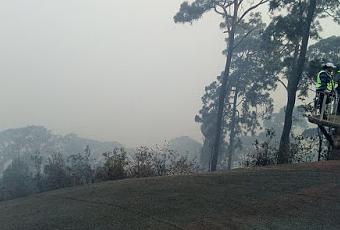 Este domingo acudieron a la zona 70 combatientes de Probosque, 20 de Conafor, seis de la Cepanaf, 15 de la brigada municipal y 30 de brigadas rurales, así como el apoyo de 40 elementos de la Secretaría de Seguridad del Estado de México (SSEM), para remover material incandescente y evitar que se reavive el fuego.