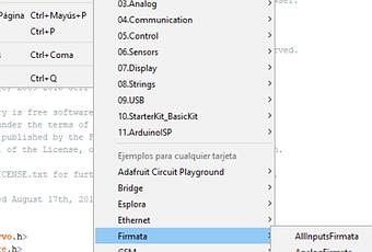 - Acceda al menú Archivo> Ejemplos> Firmata