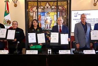 En un acto oficial realizado en el Palacio Municipal, el Alcalde de San Luis Potosí, Enrique Galindo Ceballos, firmó un convenio de colaboración con el Concejo del Municipio de Villa de Pozos para establecer las fechas de entrega de los servicios escolares y la cesión de las instalaciones del Centro Educativo Tepeu. Con esta acción, se da un importante paso en el ámbito educativo para las niñas y niños habitantes de Villa de Pozos.