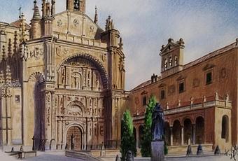 En pleno centro de la ciudad de Salamanca se ubica uno de los edificios religiosos mĂĄs importantes y visita obligada para quien busca admirar uno de los mĂĄs bellos ejemplos del plateresco: la iglesia del Convento de San Esteban. Propiedad de la Orden de los Dominicos y sede de la Pontificia Facultad de TeologĂa de San Esteban fundada en 1947, “Los Dominicos”, como asĂ también se le conoce, contaban ya en 1255 con un primitivo convento en Salamanca, aunque fue destruido mĂĄs tarde para construir el actual, entre los siglos XVI y XVII. Por tanto, es de estilo gĂłtico, pero su decoraciĂłn es plateresca y barroca. La iglesia es de planta de cruz latina, con una Ăşnica nave, en cuyo interior la mirada se nos clava de inmediato en el impresionante retablo mayor de Churriguera, de finales del XVII, con seis grandes columnas salomĂłnicas recubiertas de motivos vegetales. El edificio cuenta con tres claustros, entre los que destacan el de los Reyes CatĂłlicos y el claustro de ColĂłn. El PĂłrtico exterior es un bello ejemplo de la arquitectura del Renacimiento. Cada uno de sus rincones es Ăşnico y llamativo, pero el mayor interés artĂstico lo captura su espléndida fachada plateresca, labrada en piedra de Villamayor, cuyos detalles ornamentales cobran vida al incidir el sol de media tarde sobre ella, imprimiendo un color anaranjado y acentuando cierto dramatismo con las luces y sombras creadas, un verdadero retablo al aire libre.