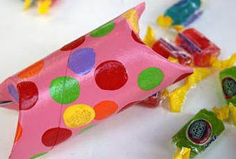 Caramelos Dobla un lado de los extremos del tubo de papel hacia adentro. Luego dobla el otro. Repite el procedimiento con el otro lado. Luego pinta el tubo con un poco de pintura. Hazle el diseño que más te guste. Incluso los mismos peques de la casa pueden pintarlos. Por último, llena con caramelos y dulces y dobla nuevamente los bordes.