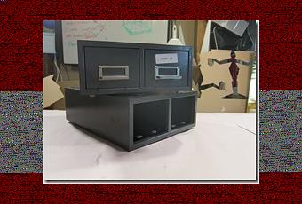 Primero, quitamos los cajones a los archivadores y tapamos los agujeros con masilla de silicona, dando una buena capa de pintura de imprimación, tanto en el interior como en el exterior.