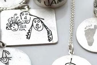 Con un especial proceso de fabricación es capaz de grabar sobre oro o plata (o a partir de joyas recicladas; ya que el material base también forma parte de la elección personal de cada uno) los dibujos de los niños e incluso su firma para crear los más personales anillos, pendientes, llaveros o broches. Además ha incorporado una mueva linea para los padres de peques tan peques que, como en mi caso, aún no pueden sostener un lápiz, y que convierte las huellas de sus piesecitos o manos en la joya más personal.