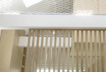 El proyecto está centrado en el interior de una vivienda, y podremos observar en las fotografías, un cubo, hamacas de red y una gran variedad de curvas.
