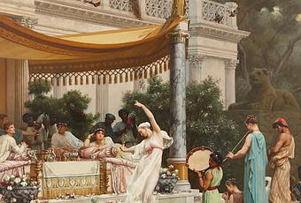 “En sus triclinios de artesonado giratorio cubría a sus invitados de violetas y flores, hasta el punto de que algunos de ellos murieron al no poder salir al exterior.” (Historia Augusta, Heliogábalo, 21, 5)