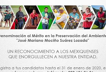 El registro de candidatos para la Presea Estado de México, en la categoría al Mérito en la Preservación del Ambiente “José Mariano Mociño Suárez Lozada” estará abierto hasta el próximo 31 de enero de 2020, a las 18:00 horas.