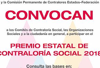 Toluca, Estado de México. El Gobierno del Estado de México, a través de su Secretaría de la Contraloría (Secogem), convoca a participar en el 10º Premio Estatal de Contraloría Social 2018, con el propósito de incentivar y reconocer el trabajo realizado por los Comités Ciudadanos de Control y Vigilancia (COCICOVIs), así como de las Organizaciones de la Sociedad Civil y de la sociedad, en general, que realizan prácticas de seguimiento, supervisión y vigilancia de las obras y programas que ejecutan recursos públicos.Los interesados podrán participar en tres categorías: Obra Pública, Programas Sociales y Acciones de las Organizaciones de la Sociedad Civil y la sociedad en general, con los temas Acciones para promover la legalidad, integridad, transparencia y honestidad; Acciones ciudadanas que fortalecen la ética e integridad; Acciones ciudadanas para propiciar la integridad; y Legalidad, integridad y honradez, compromisos ciudadanos.La inscripción de los trabajos es gratuita y serán recibidos del 9 de julio y hasta el 10 de agosto de 2018, de lunes a viernes, de 9:00 a 18:00 horas, en las oficinas de la Dirección General de Contraloría y Evaluación Social, así como en las siete Delegaciones Regionales de Contraloría Social y Atención Ciudadana.Los premios para el primer lugar son $12,000.00 (doce mil pesos 00/100 M.N.) y reconocimiento; para el segundo sitio $9,000.00 (nueve mil pesos 00/100 M.N.) y reconocimiento; y para el tercer puesto $7,500.00 (siete mil quinientos pesos 00/100 M.N.) y reconocimiento.Los resultados se publicarán en el sitio web www.secogem.gob.mxy se notificará a los ganadores día el 28 de septiembre de 2018. Los trabajos ganadores en las tres categorías participarán en el certamen nacional.Para mayores informes se pueden consultar las bases de la convocatoria en www.secogem.gob.mx.