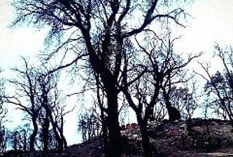 La obra pertenece a la serie fotográfica “En ningún lugar”, documento gráfico del estado en que quedó, semanas después, la zona del Empordà tras sufrir un incendio por un cigarrillo mal apagado provocando un gran desastre humano y natural en la zona.