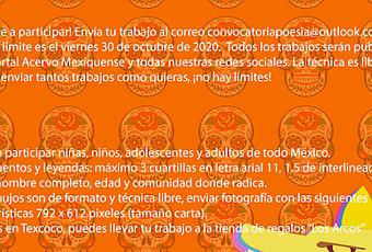 En el marco del quinto aniversario del portal de noticias Acervo Mexiquense, te invitamos a participar con un dibujo, una leyenda o cuento, en conmemoración al día de muertos en México.