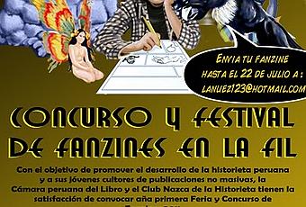 Se convoca al I Festival y Concurso de Fanzines FIL 2011. La idea es que los que deseen participar en este evento envíen su fanzines en digital al correo de la Nuez hasta el 22 de Julio. La recepción de propuestas se inicia desde la fecha de esta convocatoria hasta el 22 de Julio, ahí serán preseleccionados e invitados a participar en el Festival de fanzines dentro del marco del II Salón del Cómic de la FIL del 28 al 31 de Julio, ademas de otorgarse un premio de jurado.La Feria del Libro como saben es un importante lugar de concentración cultural se espera al menos que por esas fechas albergue al menos 200,000 visitantes. Una gran oportunidad para mostrar su trabajo a un muy variado publico.