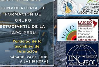 La Sección Peruana de la Asociación Internacional para la Promoción de la Geoética (IAPG, por sus siglas en Inglés) inició la convocatoria para la conformación del Grupo Estudiantil de la IAPG en nuestro país.