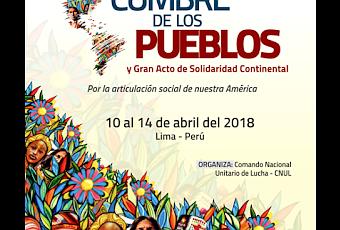El Comando Nacional Unitario de Lucha (CNUL-CGTP), el movimiento popular, sindical, las redes y plataformas de la sociedad civil, los pueblos indígenas, el movimiento feminista, juvenil, los partidos políticos y movimientos sociales peruanos reunidos como Comité Organizador, convocan a todas las organizaciones hermanas del continente americano a la celebración de la Cumbre de los Pueblos y al Gran Acto de Solidaridad Continental por la Unidad Latinoamericana y Caribeña, los días 10, 11, 12, 13 y 14 de abril de 2018 en Lima, Perú, bajo el lema: “Por la Articulación Social de Nuestra América”.Estos eventos se desarrollarán en paralelo a la VIII Cumbre de las Américas, encuentro que reunirá a los Jefes de Estado y Gobierno del hemisferio en la capital del Perú.