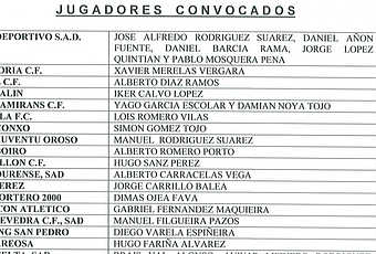 Arriba la lista de convocados, abajo algunos de los componentes del equipo que lidera la clasificación en Ourense y que curiosamente no cuenta con ningún convocado. ¿A alguien se le pasa por la cabeza cuantos recibirían el "premio" si los que habitualmente mandan en las clasificaciones vistiesen colores mas semejantes al blanco que al azul?