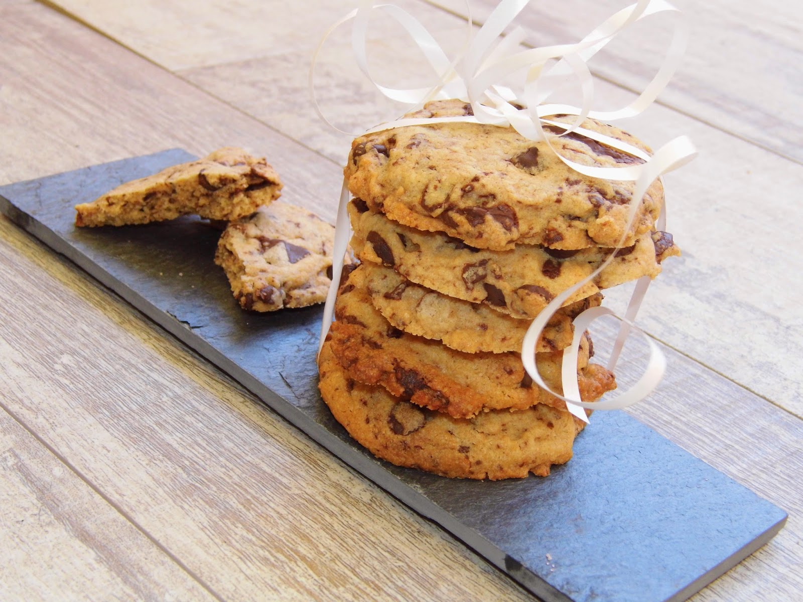 Esta receta la he hecho sin máquinas, solo utilicé un bol, unas varillas de mano y mis manitas jejeje se hace en un momento!!! 150gr de mantequilla sin sal, temperatura ambiente100gr de azúcar moreno100gr de azúcar blanco1 huevo1 cucharadita de extracto de vainilla1/2 cucharadita de bicarbonato sódico250gr de harina de trigo80gr de chips de chocolate200gr de chocolate negro para postres cortado a cuchillo ( Yo puse solo 100gr y quedó muy bien)