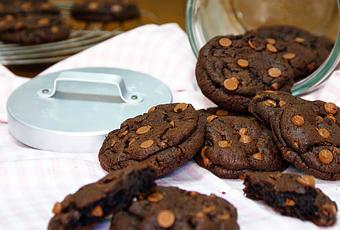 Estas galletas las hice el lunes porque esta semana aún tengo tardes libres para hacer lo que más me gusta en el mundo. Tenía ganas de hacer galletas de chocolate porque nunca había hecho antes, y además tenía todos los ingredientes por lo que no pude escaparme de encender el horno. He usado la receta que ya publiqué hace algún tiempo de Cookies Blanditas pero modificándola un poco para convertirlas en unas galletas ¡totalmente nuevas!