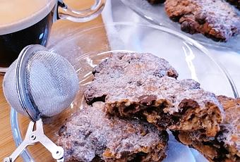 Además, son muy saludables y energéticas. La masa no lleva nada de azúcar y están hechas con harina integral.Cookies de chocolate