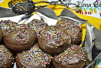 - Mientras tanto, fundimos el chocolate con leche al baño María. Bañamos en él la parte superior de las galletas y espolvoreamos unas bolitas de colores. Dejamos que el chocolate se endurezca y servimos.