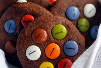 Con las manos, unimos la masa y empezamos a hacer bolitas, tamaño albóndigas. las ponemos en la bandeja de horno y aplastamos las bolas con nuestras manos, para hacerlas más planas. Colocamos lacasitos por encima y al horno uno 6-7 minutos.