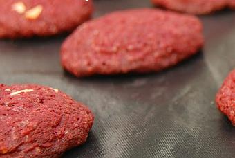 Ingredientes:105g de harina20g de cacao en polvo sin azúcar¾ de cucharadita de maicena½ cucharadita de levadura¼ cucharadita de sal28g de mantequilla sin sal, derretida y enfriada a temperatura ambiente1 huevo L1 cucharadita de extracto de vainilla106g de azúcar morenoColorante alimenticio rojo, la cantidad dependerá de cada marcaUnos 35g de chips de chocolate blanco (yo suelo utilizarlo en tableta y luego lo troceo)