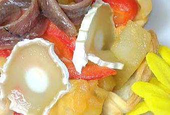 ...y decoramos con rodajas finas de queso de cabra, las anchoas o el jamón