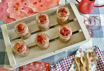 Por encima de la fruta volcá una porción de crema de frutillas al Oporto.