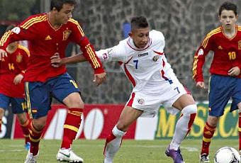 La Selección de España Sub-15 terminó la Fase de Grupos de la Primera Copa México de Naciones 2012 de manera invicta y jugando buen fútbol, al derrotar por cuatro goles a uno a su similar de Costa Rica en la cancha 1 del Centro de Capacitación. José Luis Zalazar puso el uno por cero paraLa Roja a los 24 minutos, Álvaro Rivero puso el segundo y el tercero a los 61’ y 65’, descontó Luis Aarón Elizondo a los 67’ y Aleix García puso cifras definitivas a los 69’.Con este resultado, España culmina como primer lugar del Grupo Dos con 9 unidades, mientras que Costa Rica fue el último lugar de este pelotón sin haber podido sumar puntos.Los españoles se medirán el próximo viernes en las Semifinales ante Colombia, en tanto que Costa Rica queda eliminada de la competencia. Apenas inició el encuentro, los españoles se le fueron encima de los Ticos. Desde el primer silbatazo en la cancha 1 del Centro de Capacitación se vio la intención de ambos conjuntos, España, escuadra que ya esta instalada en Semifinales, buscando el gol que les diera la ventaja; Costa Rica, ya eliminados, trataban de sumar sus primeros puntos en la justa pero aguantaban a su rival atrás del mediocampo.El balón era manejado por los europeos, que tenían sus primeras llegadas de gol en los primeros instantes del juego, pero su falta de puntería y la buena actuación de Kevin Monterrey, arqueroTico, evitaban la caída de su marco. LaFuria comenzaba a tener el dominio de las acciones.Álvaro Rivero derrochaba clase cada que tomaba la de gajos, a los 17’ se quitó a media defensiva de los centroamericanos y metió escopetazo que el cancerbero rival controló con algunos problemas. Se percibía cerca la anotación de los españoles.La presión de los de la península ibérica surtiría efecto a los 24’. José Luis Zalazar tomó la de gajos en tres cuartos de cancha, la llevó unos metros adelante y metió escopetazo de zurda que el portero de los costarricenses no pudo desviar a tiro de esquina, a pesar de lance. La Furia se hacía presente en el marcador.Kevin Monterrey, portero de Costa Rica, se comenzaba a erigir como la figura del equipo en la primera mitad. A pesar de haber recibido un gol, el guardameta de losTicos sacaba todos los disparos que los españoles intentaban. Volaba de un lado a otro de la portería sacando balones de gol.La primera mitad expiró y ambos se irían al descanso del medio tiempo con la ventaja para los españoles, que aspiraban a cerrar perfectos la fase de grupos de la competencia.En el complemento, ambos estrategas realizaron algunos ajustes para tratar de tener un mejor funcionamiento. España seguía intentando ampliar el marcador y Costa Rica a toda costa trataba de evitar de nueva cuenta la caída de su marco.Costa Rica comenzaba a inquietar a su rival con peligrosos contragolpes, sin embargo, España no permitía real peligro en su portería. Los fogonazosTicos se iban desviados de la cabaña ibérica.Álvaro Rivero amplió la ventaja para los españoles a los 61’. El 16 español realizó una estupenda pared que culminó con una buena definición ante la salida del guardameta de Costa Rica. España era muy superior a su rival.LaFuria Roja volvió a mover la pizarra a los 65’. De nueva cuenta Álvaro Rivero entró por el lado derecho al área de los centroamericanos y ante el achique de Kevin Monterrey solamente la bombeó para poner el tercero de los europeos.Luis Aarón Elizondo fue el autor del descuento para Costa Rica a los 67’. El 15 de losTicos recibió la de gajos afuera del área, se acomodó y metió escopetazo que terminó cimbrando la portería defendida por Rubén Ualaloca, arquero español.Cuando parecía que el tanteador ya no se movería, Aleix García, futbolista ibérico que había entrado en el complemento, solamente tuvo que empujar la de gajos al fondo de la portería rival a los 69 minutos.España culminaba como el líder del Grupo 2 y Costa Rica terminaba como último del mismo pelotón.Dirección de Comunicación FEMEX.FUT.RESULTADOS DE LA JORNADA Y CLASIFICACIONES