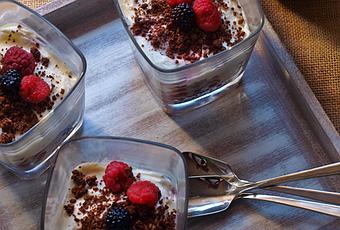 Bueno vamos con la receta de hoy porque sé que os va a encantar, no ocurre que en ocasiones se necesita un postre express??, ya sea porque apetece algo dulce o porque sin mucho tiempo de aviso te vienen invitados y quieres darles un postre rico.La propuesta de hoy es muy fácil, muy rica y tan solo necesitarás unos 20 - 30 minutos para poder tomarlo. Partiendo de la idea de la tarta selva negra (chocolate, cerezas, crema) he preparado mi versión rápida y de andar por casas, en especial para aquellos que el tema cocina les cuesta.Un postre fresquito que además con la acidez de los frutos rojos le aporta un poco más si cabe y reduce el dulzor, aunque casi no lleva azúcar.