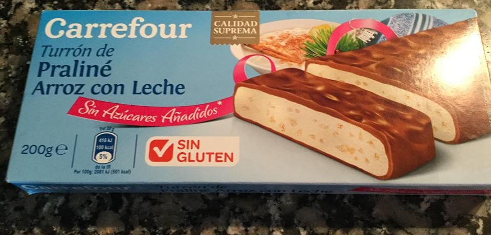 _ 1 tableta de turrón de arroz con leche sin azúcar/ o con azúcar