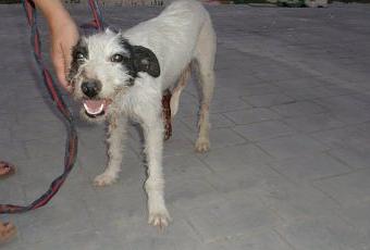 " He ido al polig. el Corbones y allí estaba entre unos hierros acurrucada. Estaba muy quietita y no habia forma de sacarla, ya que le dolia mucho la patita y estaba con fiebre y deshidratada.Es una perrita meztiza de unos 7-8 meses. Es un amorcito de lo buena que es.