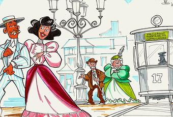 Preciosa copla de Antonio Casero que relata el encuentro de dos personas mayores en el tranvía número 17, que hacía el recorrido Progreso-Puerta del Sol-Cuatro Caminos. No falta la chispa y ocurrencia madrileñas en los diálogos que Casero reproduce con gracia y maestría.Acompaña a la copla una ilustración de lo que era Cuatro Caminos en 1912, cuando aún no se había instalado en la glorieta el pilón de la Puerta del Sol.
